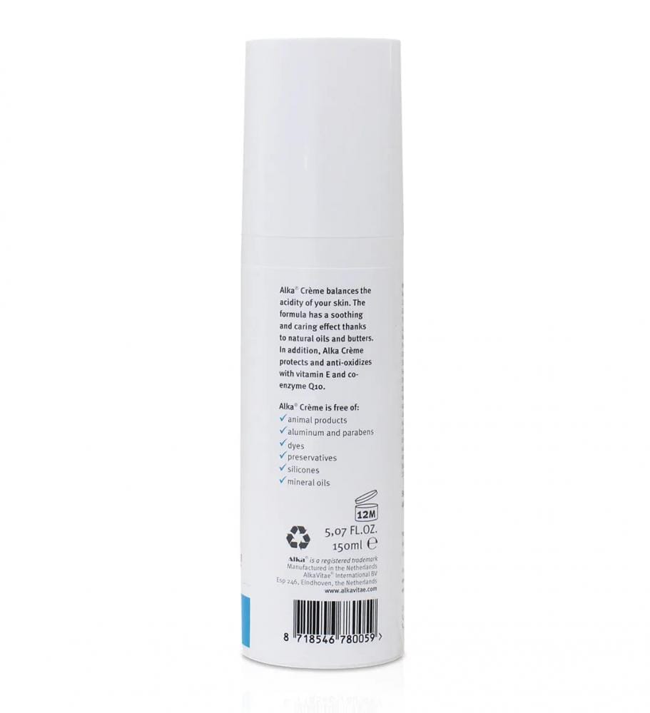 Alka® Crème is hygienically packaged in an air and light-tight tube with a convenient dosing pump. When using the tube, remove the cap from the tube, hold the tube horizontally in your hand and press the pump a few times until the cream comes out of the opening. Do not squeeze the tube itself. On first use, press the pump several times before the cream appears.