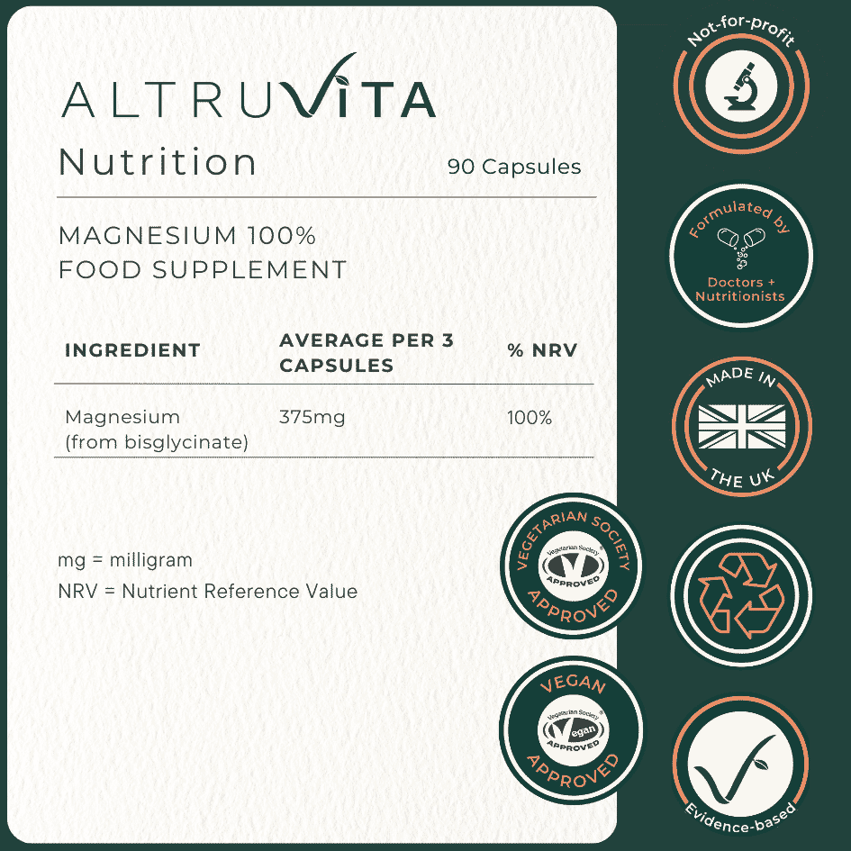 Magnesium is an essential mineral required in small amounts for every bodily system. AltruVita magnesium supplement is from highly absorbable magnesium bisglycinate. This magnesium supplement is bound to two amino acids, which are easily absorbed in the small intestine.
