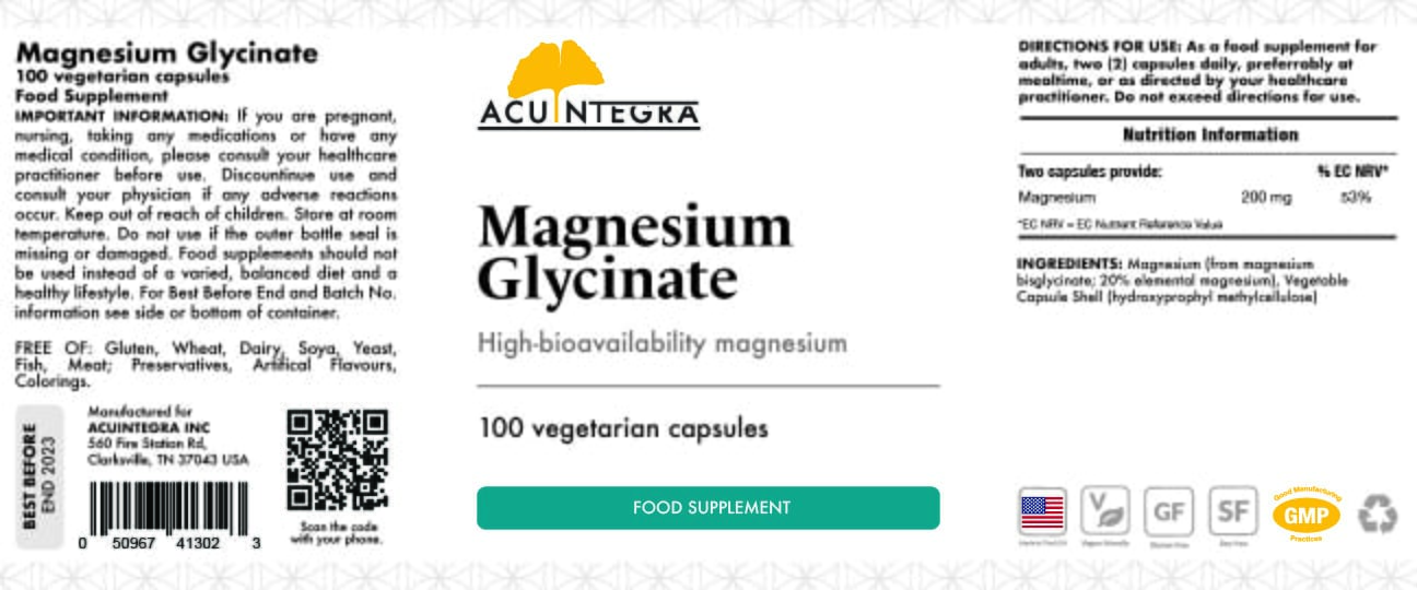 High-grade magnesium glycinate in 500mg capsules of at least 100mg magnesium in each.