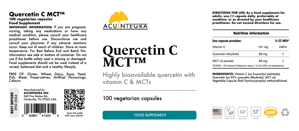 High-grade quercetin with vitamin C and MCTs for superior bioavailability and good functioning of the immune system.