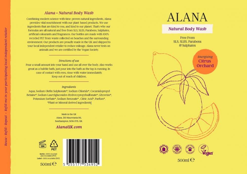 Alana is formulated with natural ingredients & free from SLS, SLES, parabens, sulphates & artificial colourants. These bottles are made with 100% recycled PET from waste collected on beaches & the surrounding environment. Alana never tests on animals & they are certified by the Vegan Society.