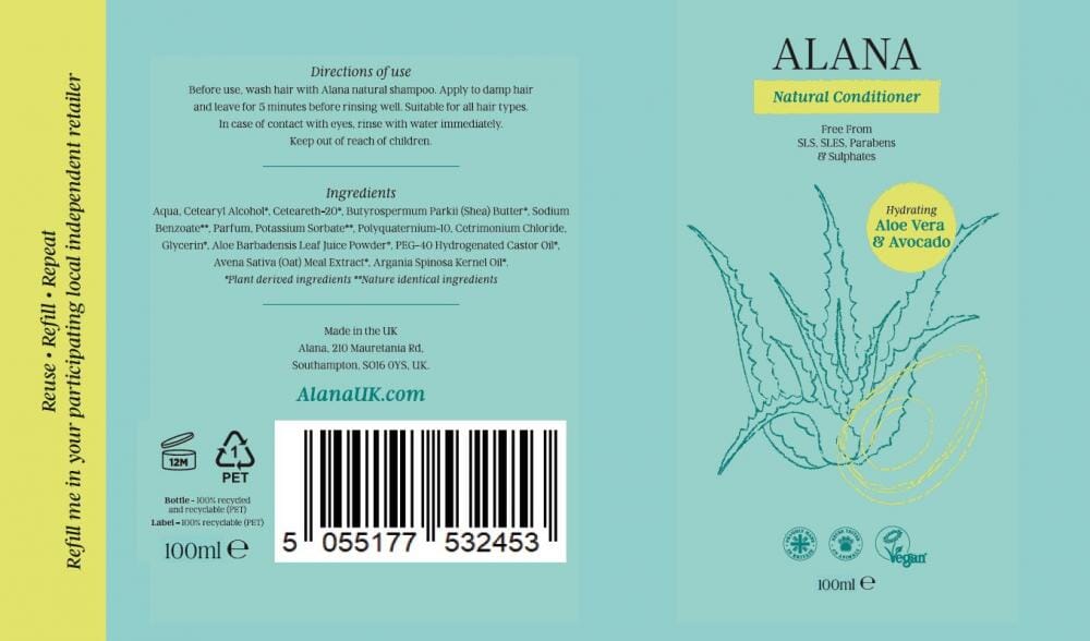 Alana is formulated with natural ingredients & free from SLS, SLES, parabens, sulphates & artificial colourants. These bottles are made with 100% recycled PET from waste collected on beaches & the surrounding environment. Alana never tests on animals & they are certified by the Vegan Society.