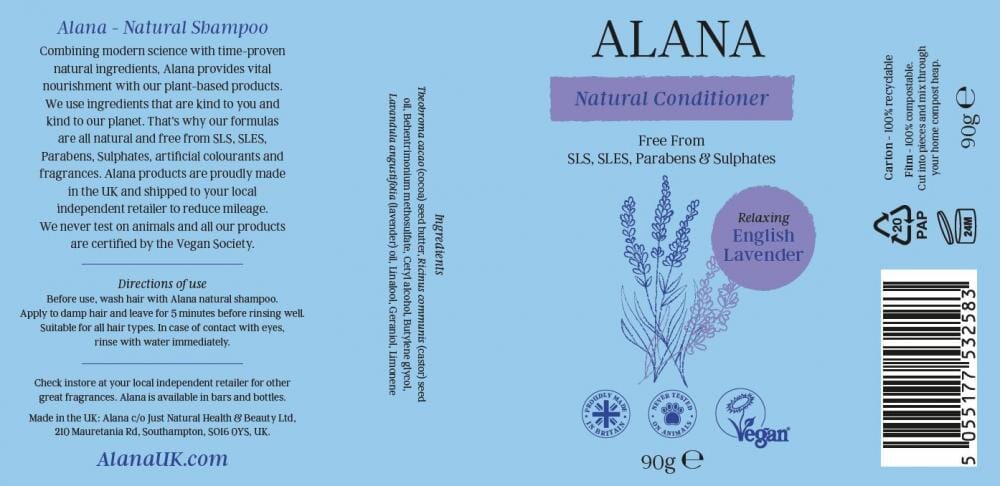 Alana is formulated with natural ingredients and free from SLS, SLES, parabens, sulphates, and artificial fragrances and colourants. The body wash, shampoo and conditioner bars are 100% plastic free, never tested on animals and they are all certified by the Vegan Society.