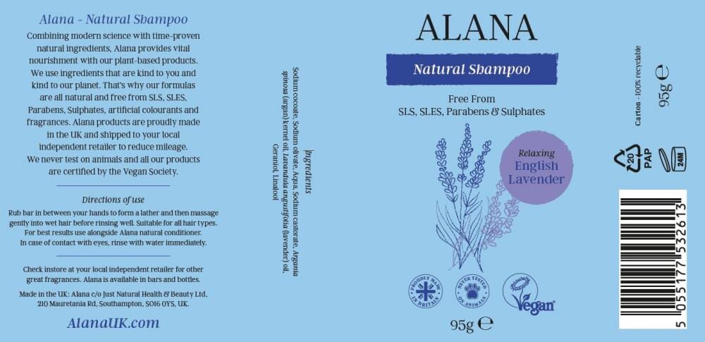 Rub bar in between your hands to form a lather and then massage gently into wet hair before rinsing well. Suitable for all hair types. For best results use alongside Alana natural conditioner. In case of contact with eyes, rinse with water immediately.