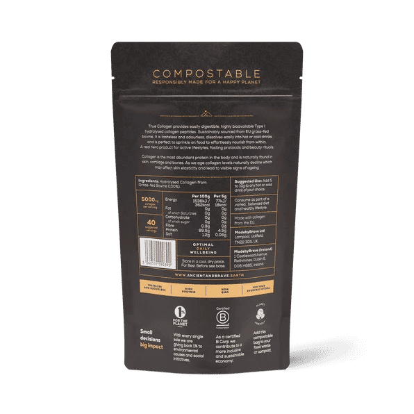 True Collagen provides easily digestible, highly absorbable and clinically researched Type 1 hydrolysed collagen peptides. Instantly dissolves, tasteless and odourless, easy to add to hot and cold drinks and pre or post workout smoothies. A real hero product for active lifestyles and beauty rituals.