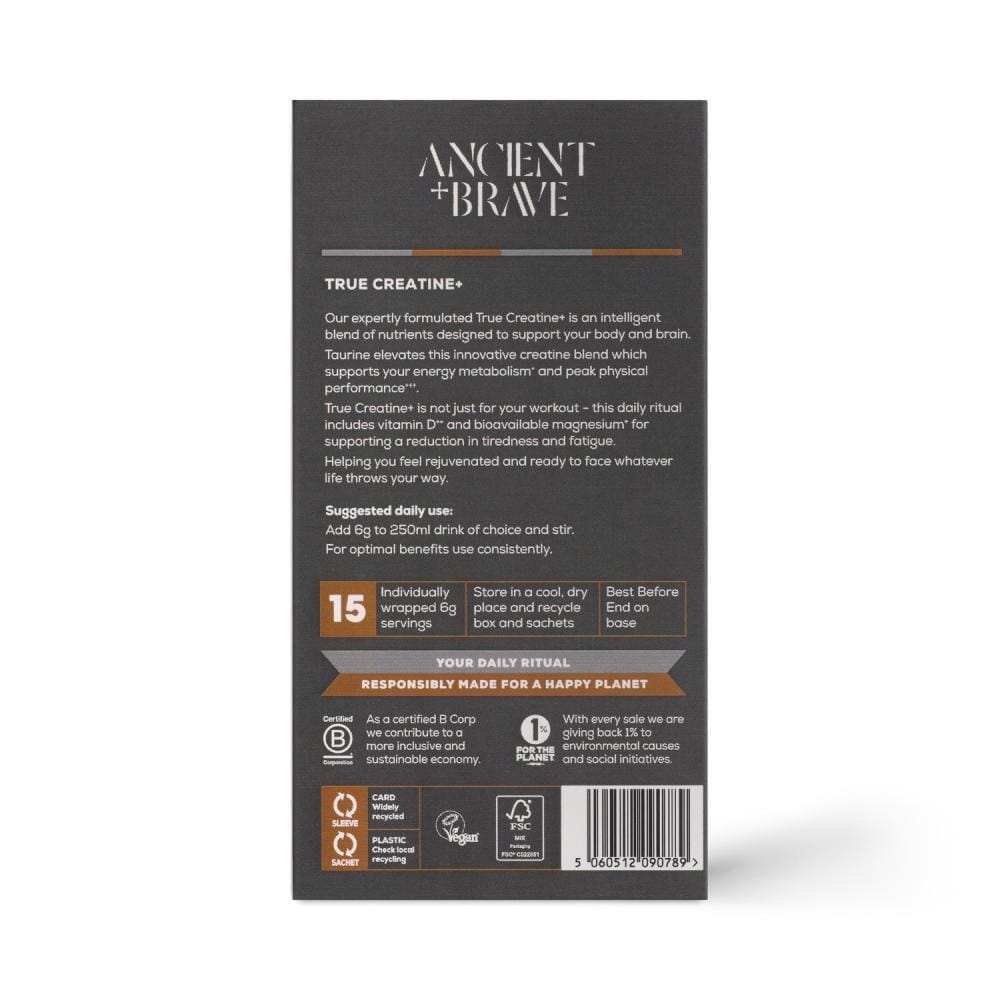 Ancient + Brave's True Creatine+ powder is neutral tasting, perfect to add to water or a drink of your choice. For optimal benefits, it is recommended to use it daily and consistently.