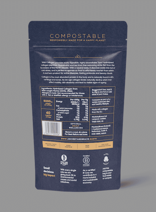 Wild Collagen provides easily digestible, highly bioavailable Type I hydrolysed collagen peptides. Sustainably sourced from free swimming white fish from the icy waters of the North Atlantic. With a neutral taste, it dissolves easily into hot or cold drinks, and is perfect to sprinkle on food.