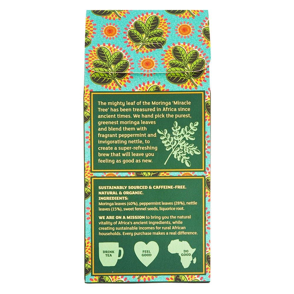 Moringa Leaves (40%), Peppermint Leaves (28%), Nettle Leaves (15%), Sweet Fennel Seeds, Liquorice Root