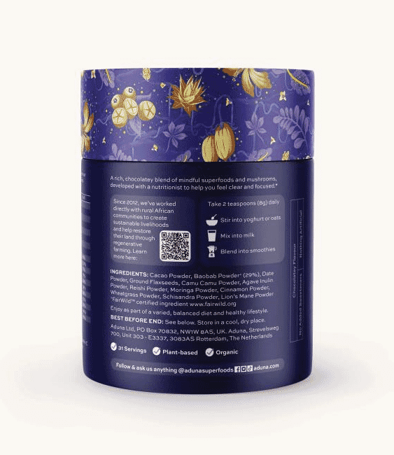 Take two teaspoons (8g) daily. Whiz into a hot chocolate or mocha. Stir into yoghurt or oats. Blend into shakes and smoothies. Use in baking recipes.