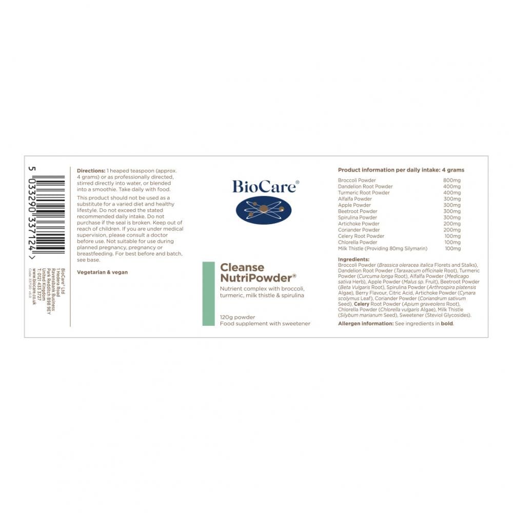 Cleanse NutriPowder is an all-in-one blend of plant extracts and antioxidants to support the body’s natural eliminative process with broccoli, turmeric, milk thistle and spirulina.