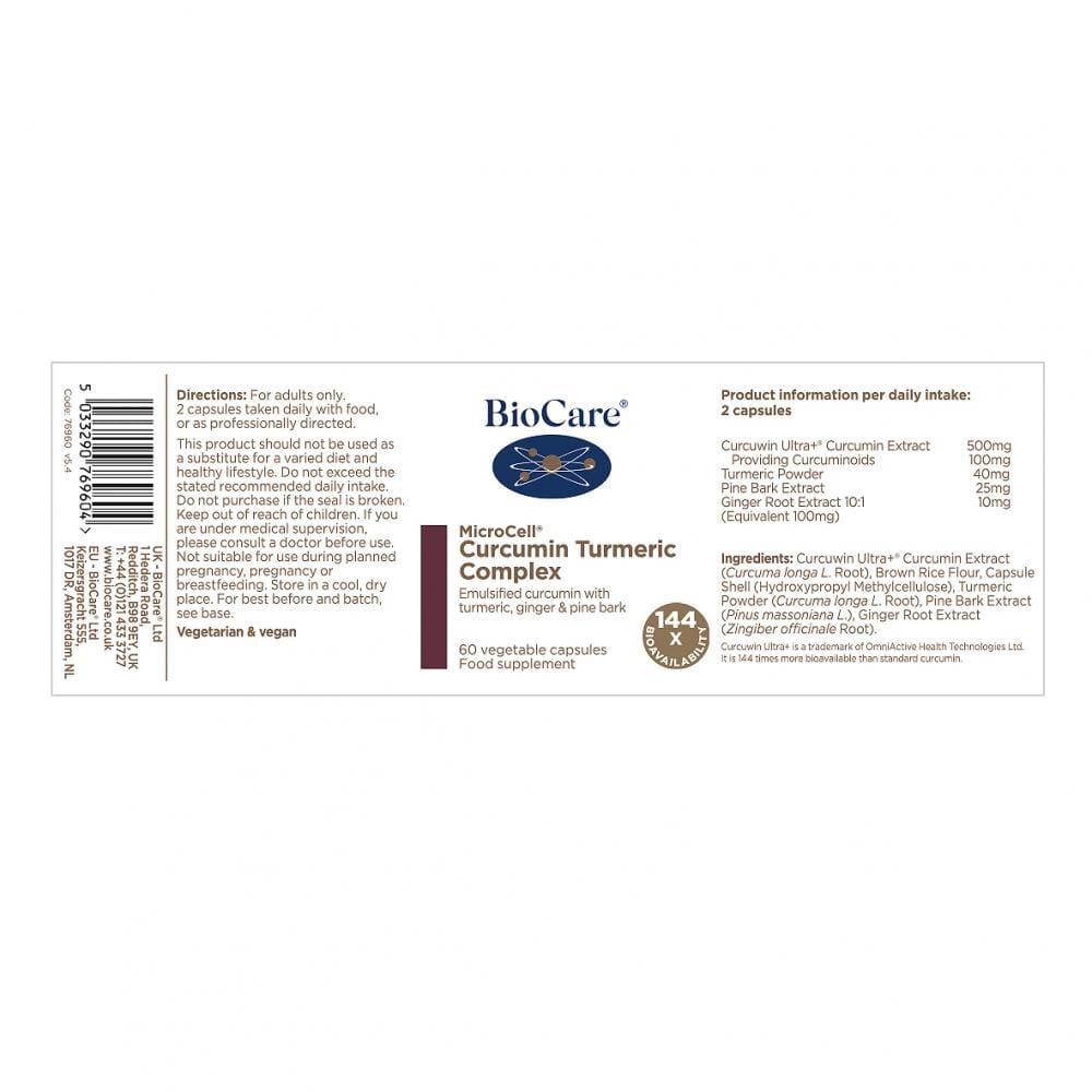 Nutrient complex with emulsified curcumin, turmeric, ginger and pine bark.