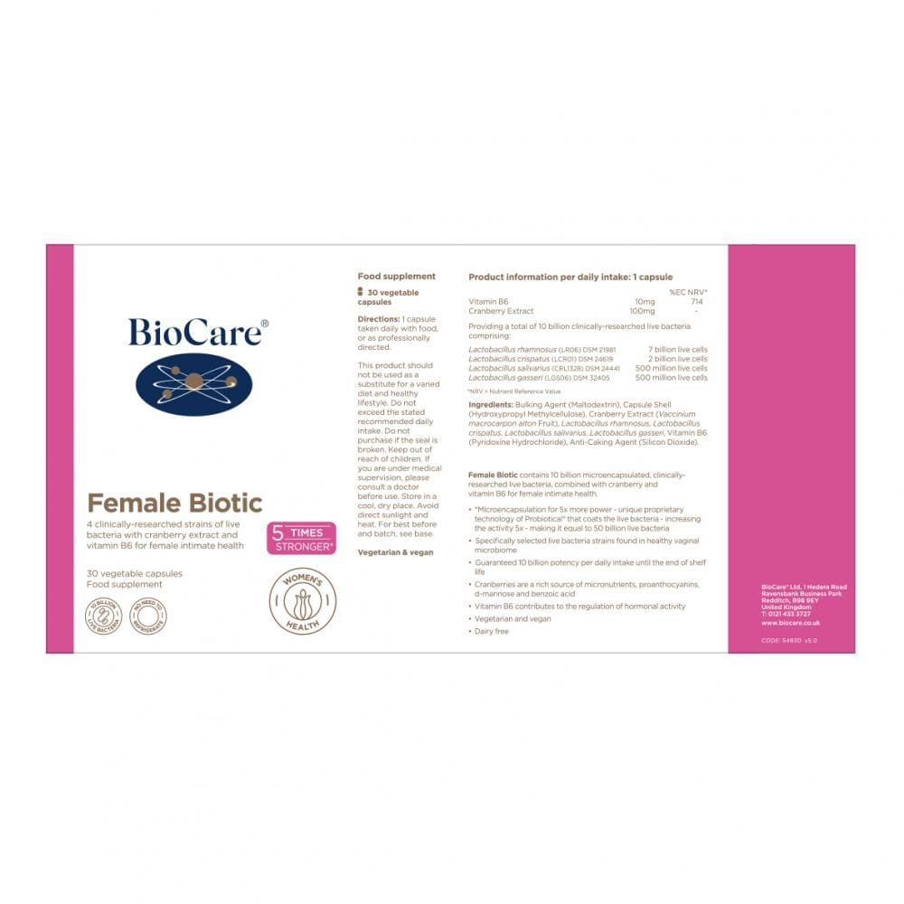 Female Biotic contains 10 billion microencapsulated, clinically-researched live bacteria, combined with cranberry and vitamin B6 for female intimate health, urinary tract support, and hormone balance.