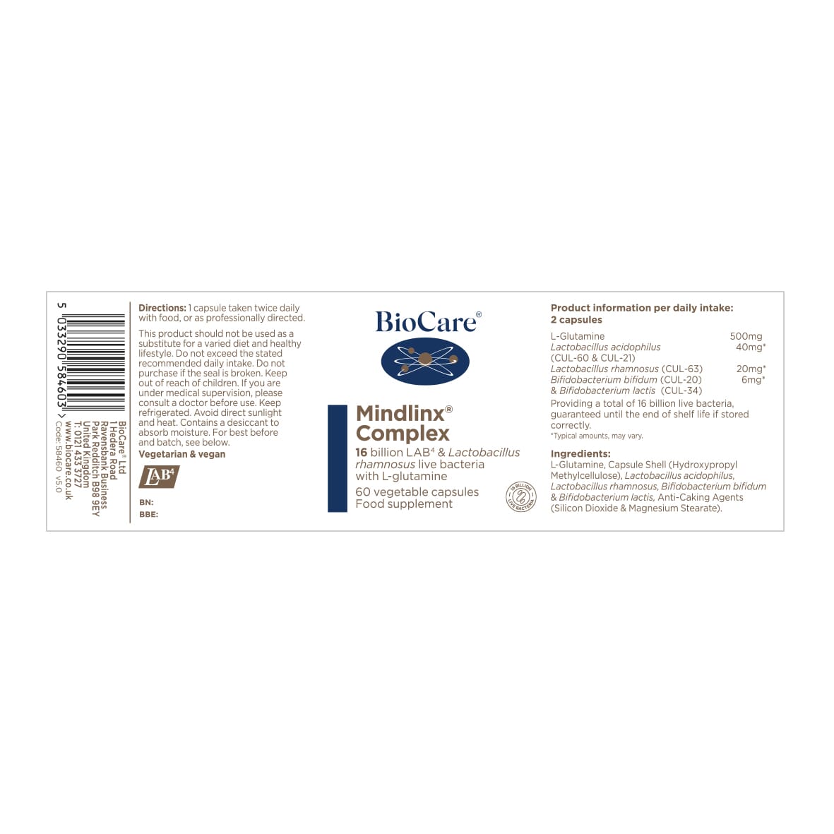 Mindlinx® Complex is a unique blend of the clinically-researched LAB4 and Lactobacillus rhamnosus live bacteria with L-glutamine.