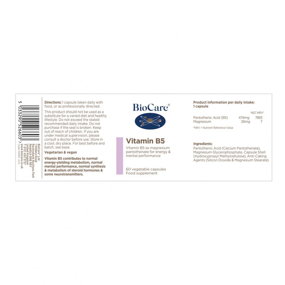 Pantothenic Acid (as Calcium Pantothenate), Magnesium Glycerophosphate, Capsule Shell (HPMC), Anti-Caking Agents (Magnesium Stearate & Silicon Dioxide).