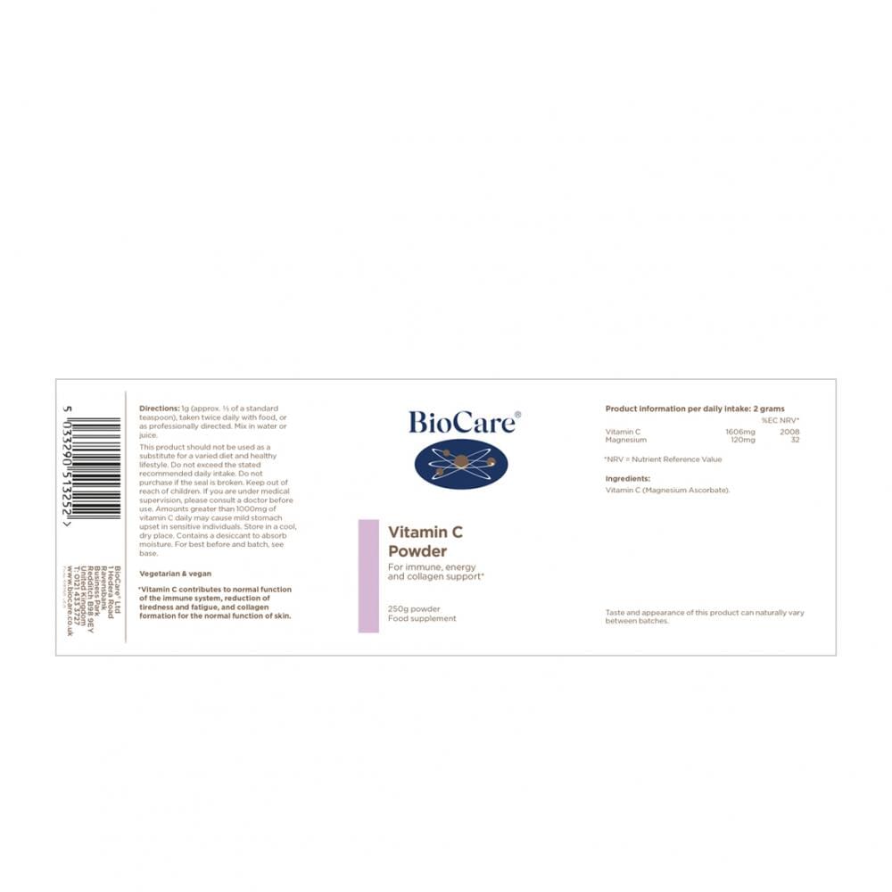 High potency, low acid form of vitamin C powder in a convenient to use powder form. For immune support, healthy skin and collagen and energy production.